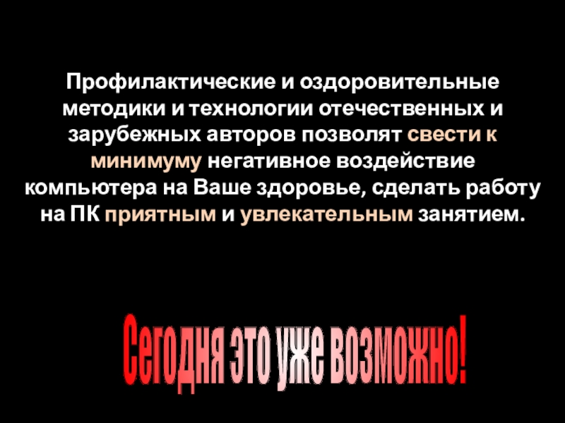 Слайд 22Профилактические и оздоровительные методики и технологии отечественных и зарубежных авторов позволят