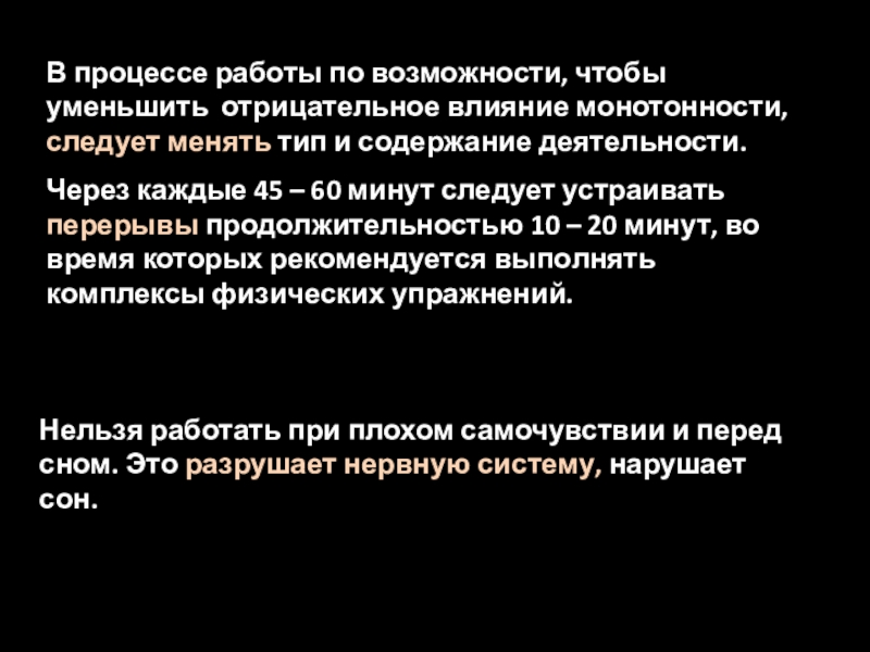 Слайд 20В процессе работы по возможности, чтобы уменьшить отрицательное влияние монотонности, следует