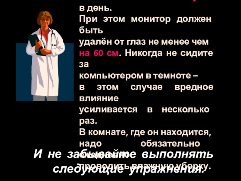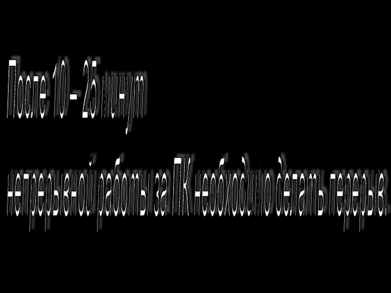 Слайд 19Не рекомендуется работать за ПК больше двух часов подряд без перерыва.