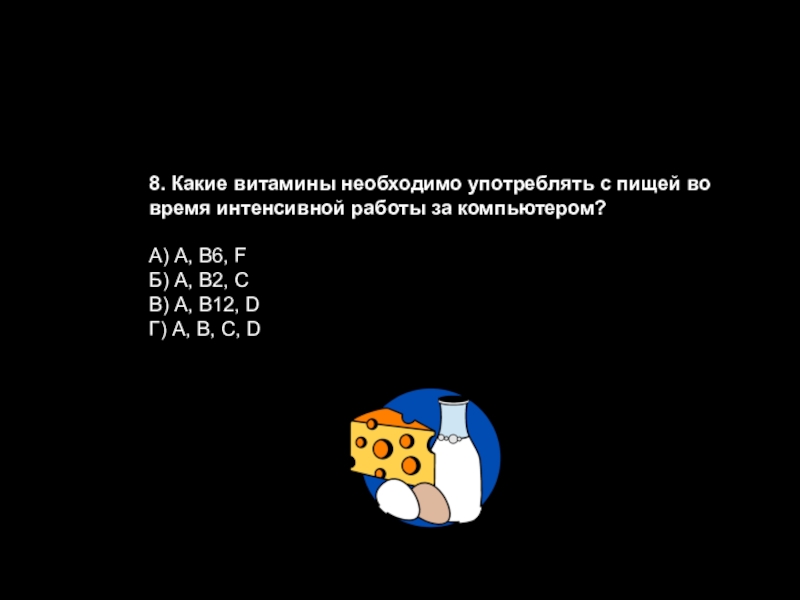 Слайд 518. Какие витамины необходимо употреблять с пищей во время интенсивной работы