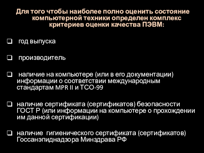 Слайд 5Для того чтобы наиболее полно оценить состояние компьютерной техники определен комплекс