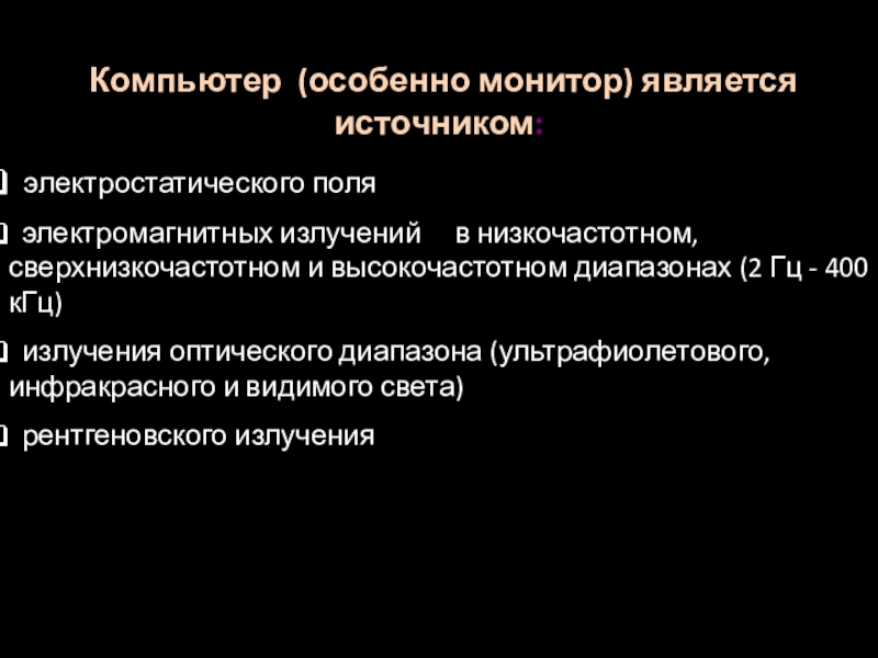 Слайд 4 Компьютер (особенно монитор) является источником: