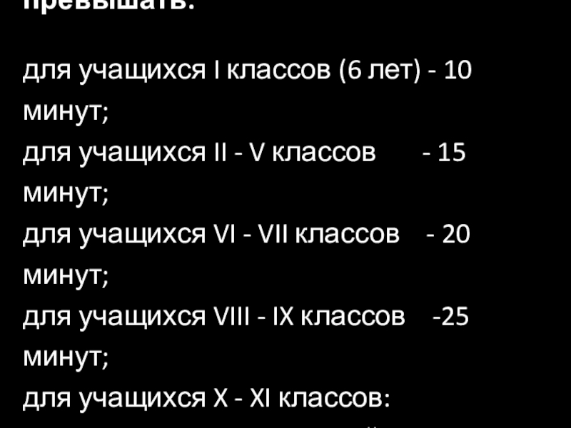 для учащихся VI - VII классов - 20 минут;