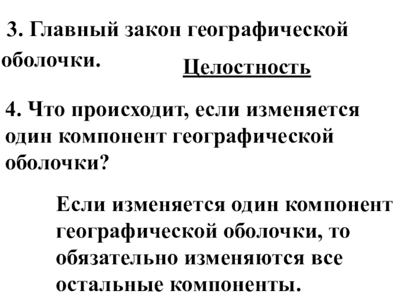 Если изменяется один компонент географической оболочки, то обязательно изменяются все