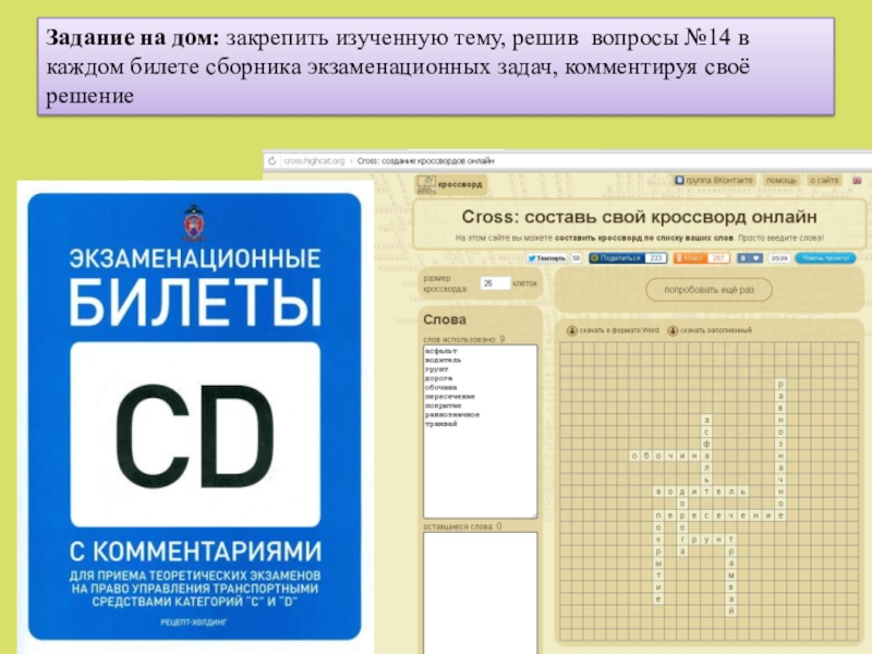 Задание на дом: закрепить изученную тему, решив вопросы №14 в каждом билете сборника экзаменационных задач, комментируя своё