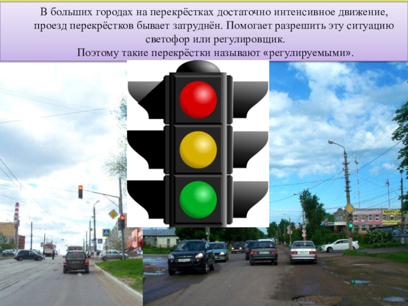 Слайд 12В больших городах на перекрёстках достаточно интенсивное движение,
