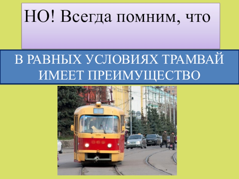 НО! Всегда помним, что В РАВНЫХ УСЛОВИЯХ ТРАМВАЙ ИМЕЕТ ПРЕИМУЩЕСТВО