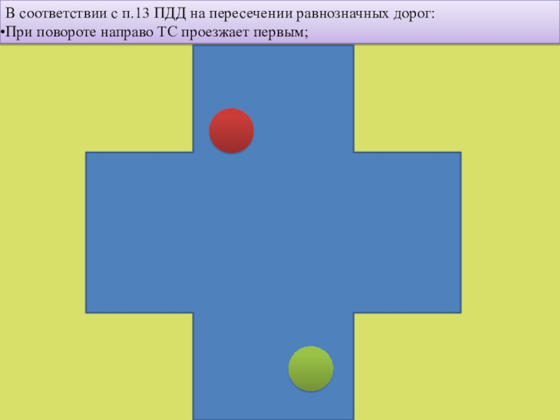 Слайд 14В соответствии с п.13 ПДД на пересечении равнозначных дорог: