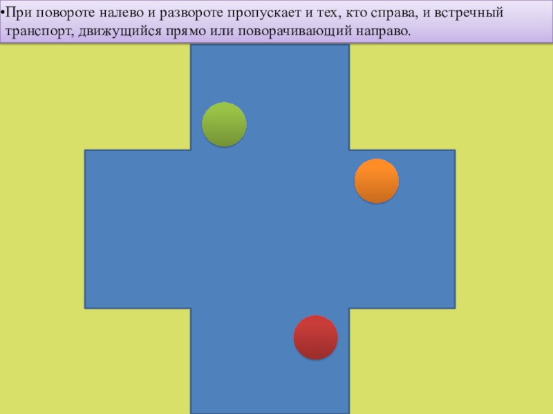 Слайд 16При повороте налево и развороте пропускает и тех, кто справа, и