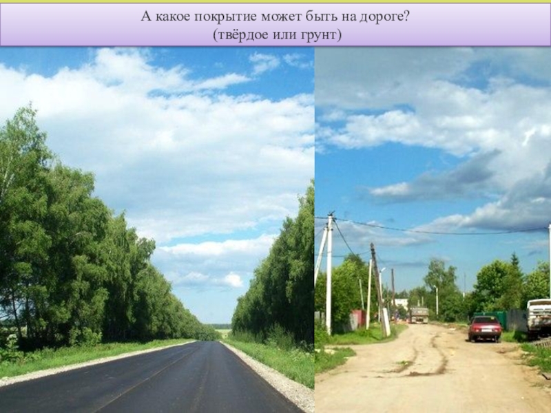 А какое покрытие может быть на дороге? (твёрдое или грунт)