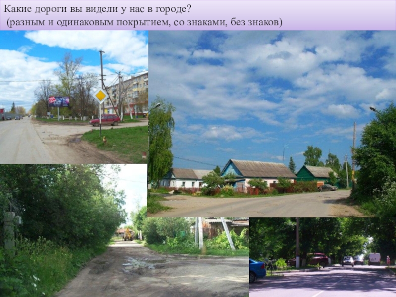 Какие дороги вы видели у нас в городе? (разным и одинаковым покрытием, со знаками, без знаков)