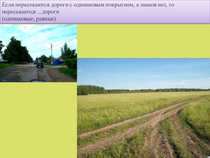 Слайд 8Если пересекаются дороги с одинаковым покрытием, а знаков нет, то пересекаются