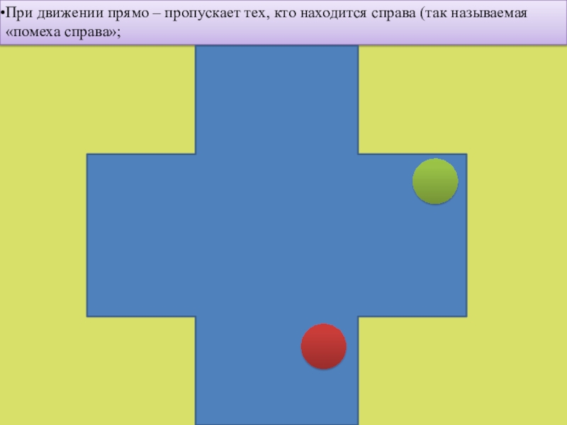 Слайд 15При движении прямо – пропускает тех, кто находится справа (так называемая