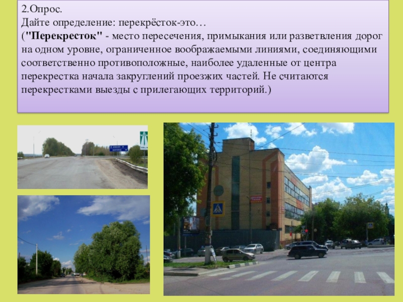2.Опрос.Дайте определение: перекрёсток-это… (