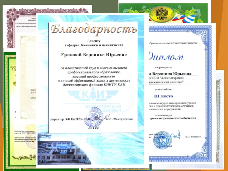 дисциплин ССУЗ Юго – востока РТ, сертификат (2013 г.);