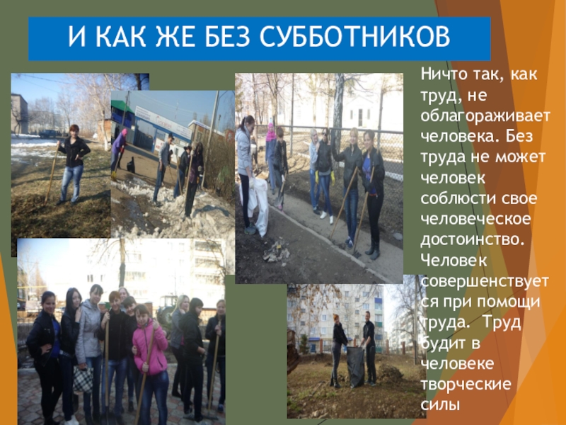 Слайд 29И КАК ЖЕ БЕЗ СУББОТНИКОВ