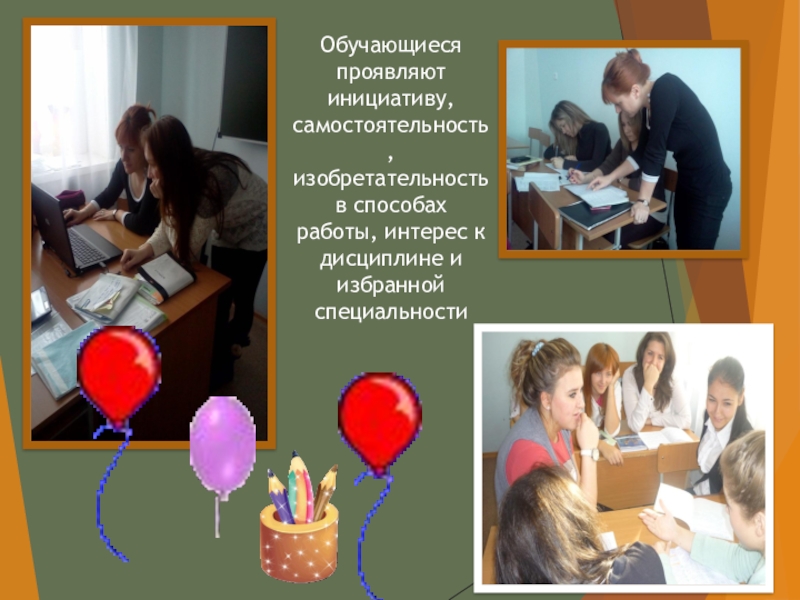 Слайд 24Обучающиеся проявляют инициативу, самостоятельность, изобретательность в способах работы, интерес к дисциплине
