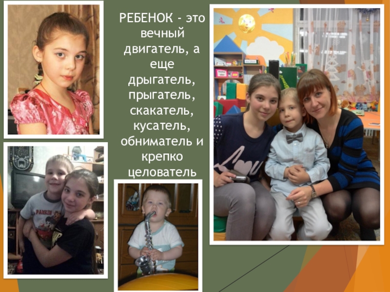 Слайд 32РЕБЕНОК - это вечный двигатель, а еще дрыгатель, прыгатель, скакатель, кусатель,