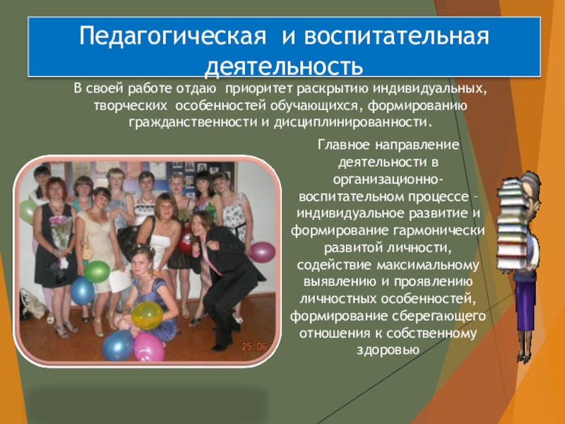 Главное направление деятельности в организационно-воспитательном процессе – индивидуальное развитие и формирование гармонически развитой личности, содействие максимальному выявлению и проявлению личностных особенностей, формирование сберегающего отношения к собственному здоровью