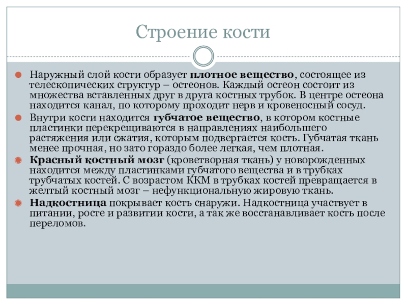 Наружный слой кости образует плотное вещество, состоящее из телескопических структур –