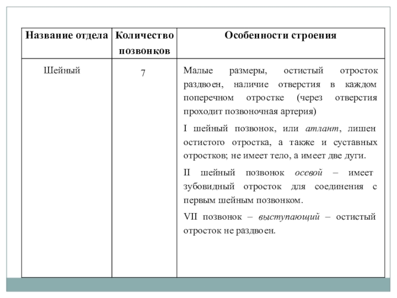 VII позвонок – выступающий – остистый отросток не раздвоен.