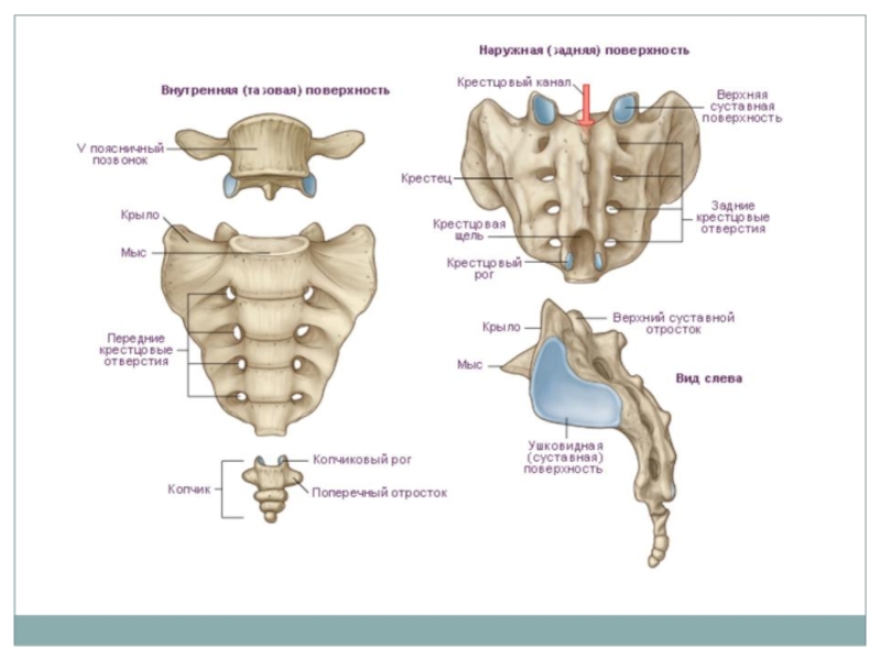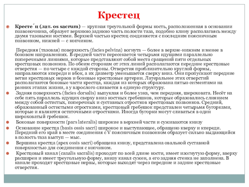 Слайд 43Кресте́ц (лат. os sacrum) — крупная треугольной формы кость, расположенная в основании