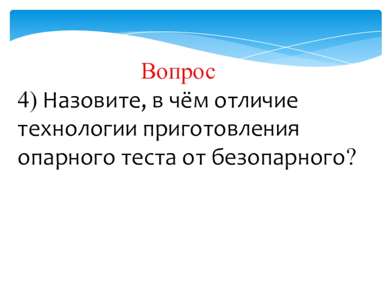 4) Назовите, в чём отличие технологии приготовления опарного теста от безопарного?