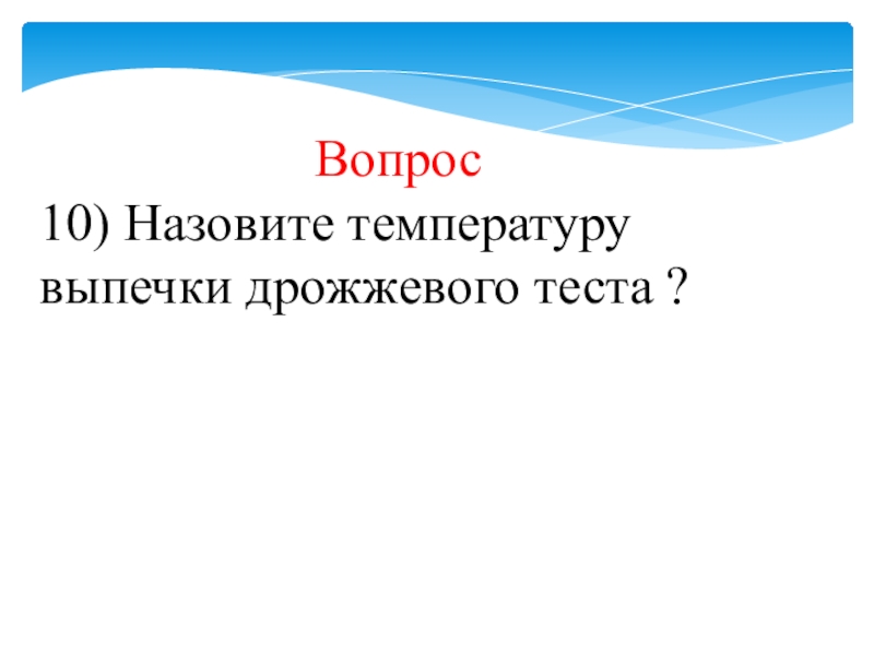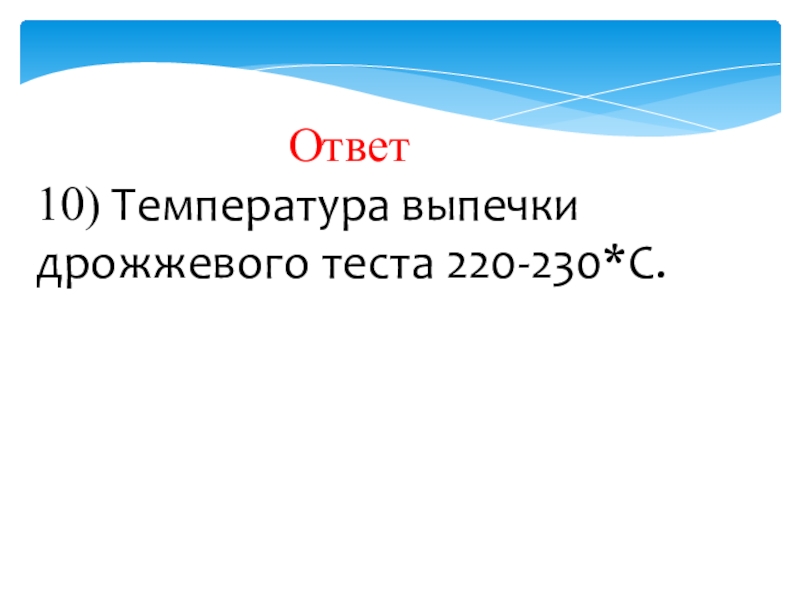 10) Температура выпечки дрожжевого теста 220-230*С.
