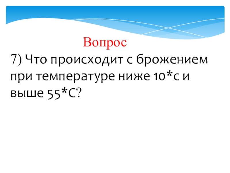7) Что происходит с брожением при температуре ниже 10*с и выше 55*С?