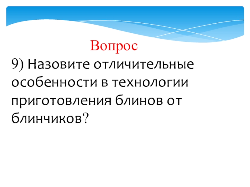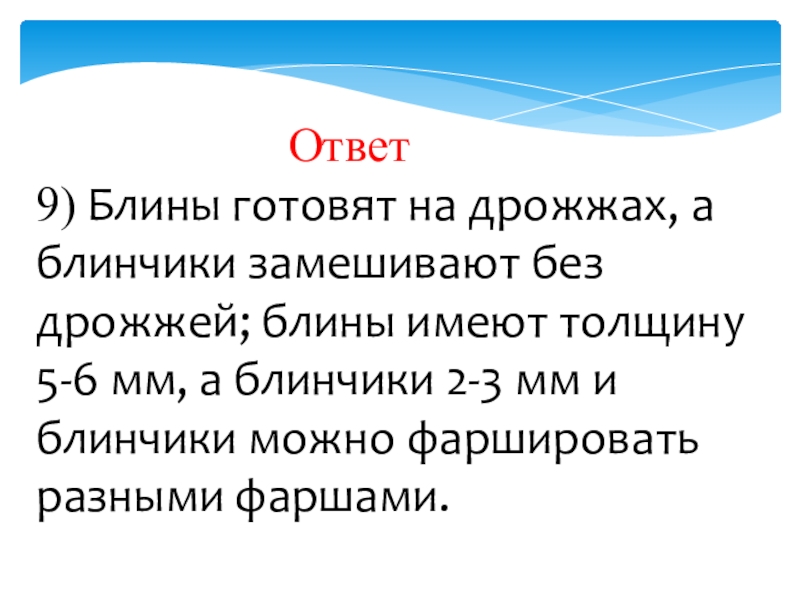 9) Назовите отличительные особенности в технологии приготовления блинов от блинчиков?