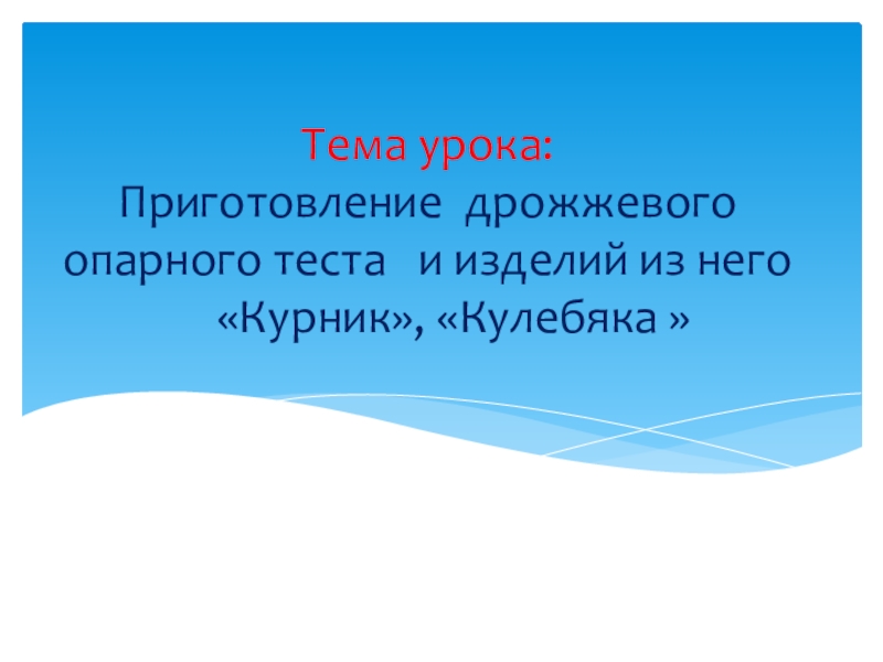 Слайд 2Приготовление опарного дрожжевого теста и изделий из него.