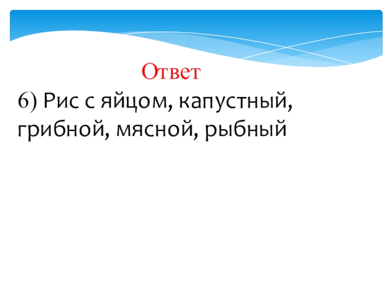 6) Рис с яйцом, капустный, грибной, мясной, рыбный