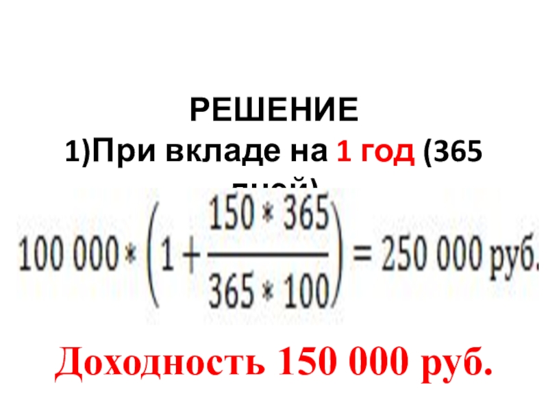 Слайд 3РЕШЕНИЕ 1)При вкладе на 1 год (365 дней)
