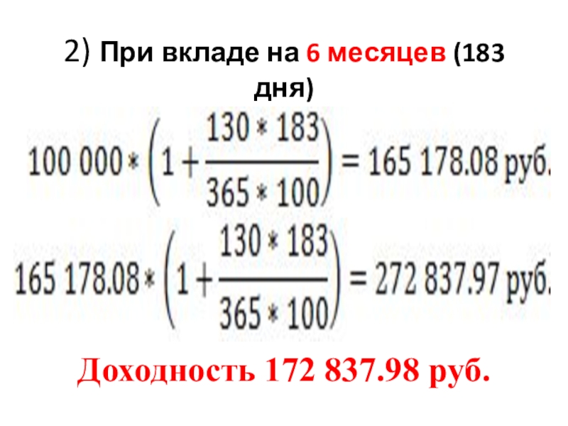 Слайд 42) При вкладе на 6 месяцев (183 дня)