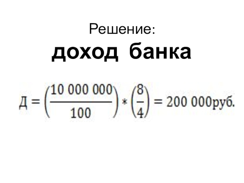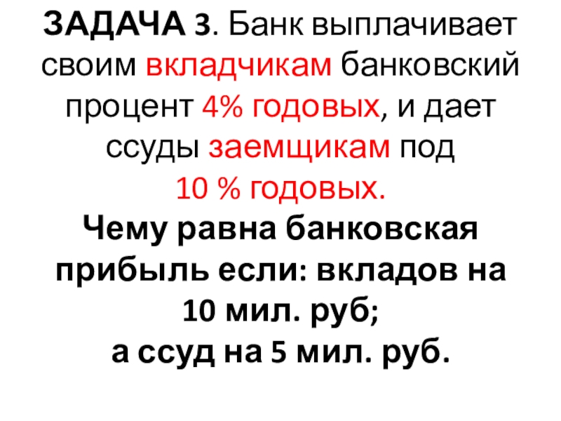 Слайд 7ЗАДАЧА 3. Банк выплачивает своим вкладчикам банковский процент 4% годовых, и