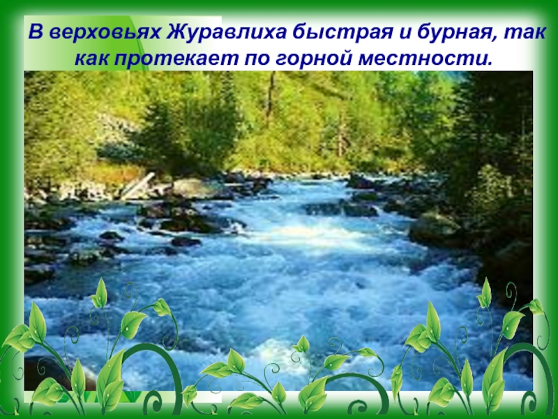 Слайд 9 В верховьях Журавлиха быстрая и бурная, так как протекает по