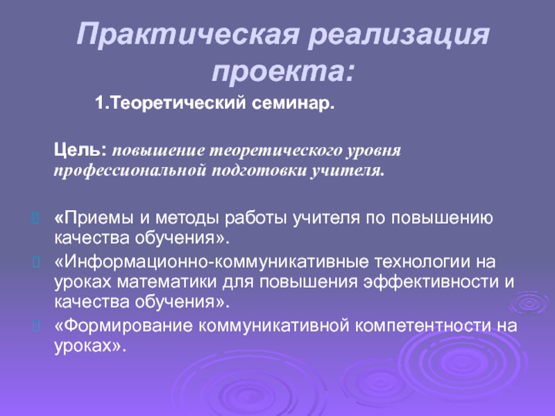 Цель: повышение теоретического уровня профессиональной подготовки учителя.