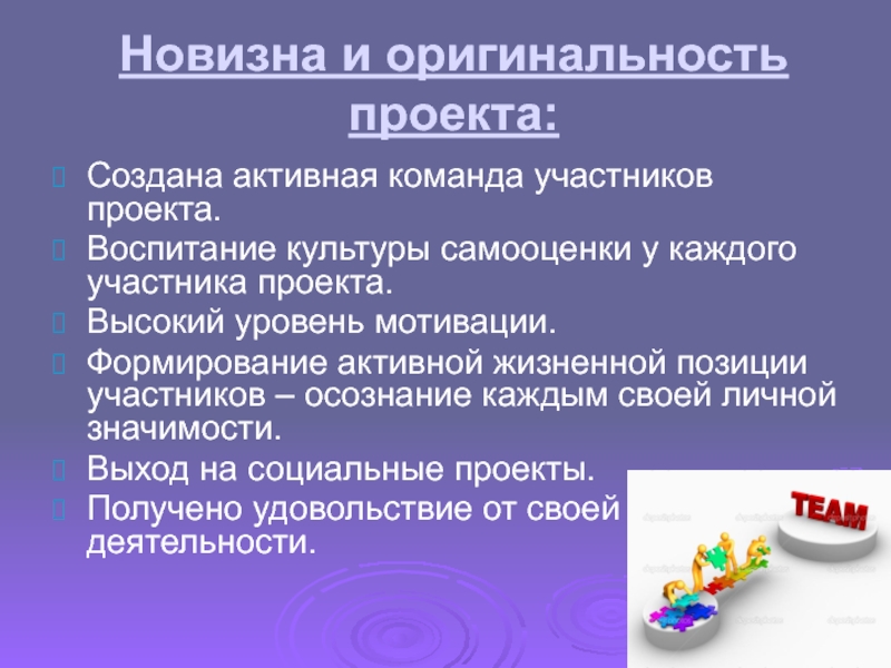 Формирование активной жизненной позиции участников – осознание каждым своей личной значимости.