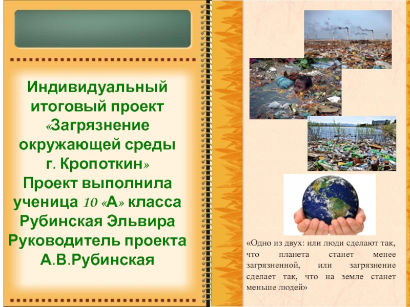 «Одно из двух: или люди сделают так, что планета станет менее загрязненной, или загрязнение сделает так, что на земле станет меньше людей»