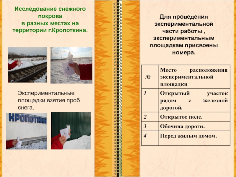 Экспериментальные площадки взятия проб снега.