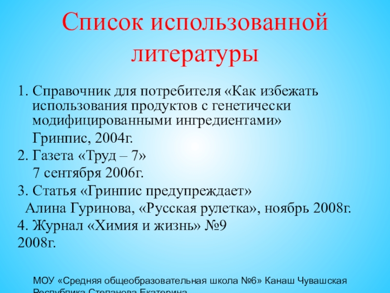 1. Справочник для потребителя «Как избежать использования продуктов с генетически модифицированными ингредиентами»