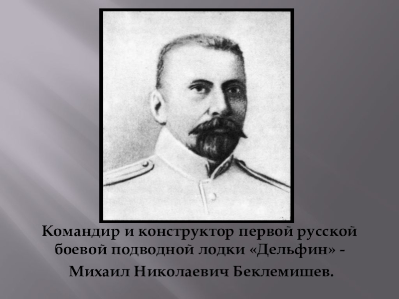 Командир и конструктор первой русской боевой подводной лодки «Дельфин» - Михаил Николаевич Беклемишев.