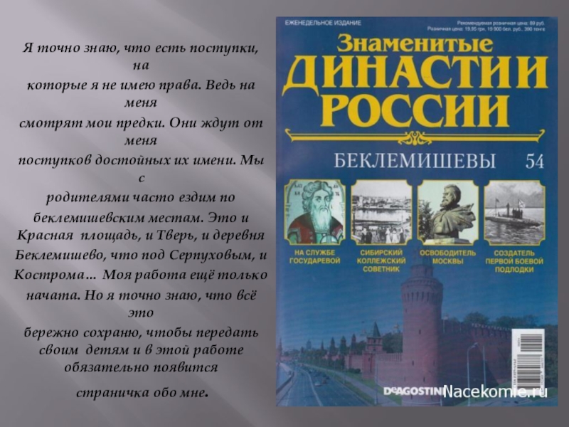 Слайд 7 Михаил Тверской и явился родоначальником моего рода, рода Беклемишевых. Рода, из которого