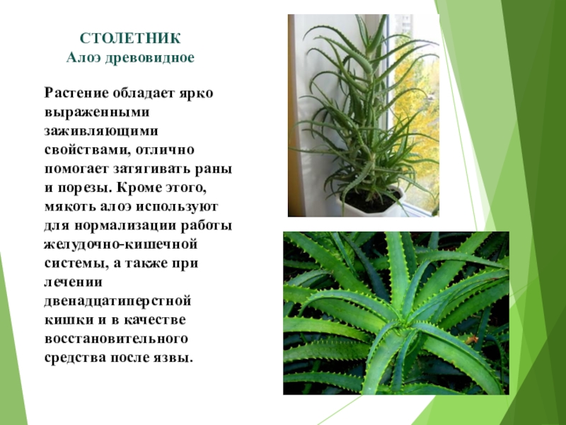и порезы. Кроме этого, мякоть алоэ используют для нормализации работы желудочно-кишечной системы, а также при лечении двенадцатиперстной кишки и в качестве восстановительного средства после язвы.
