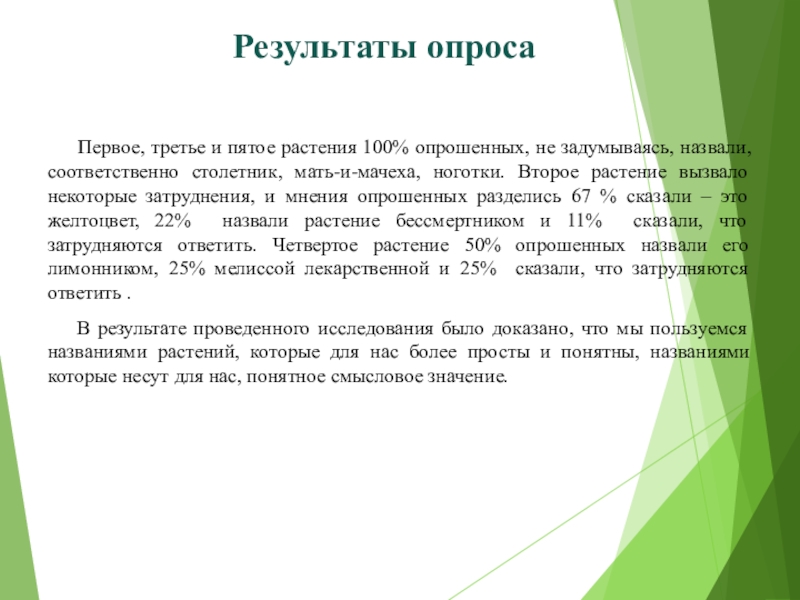 В результате проведенного исследования было доказано, что мы пользуемся названиями растений, которые для нас более просты и понятны, названиями которые несут для нас, понятное смысловое значение.