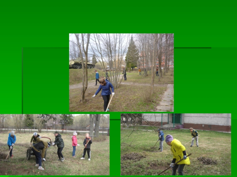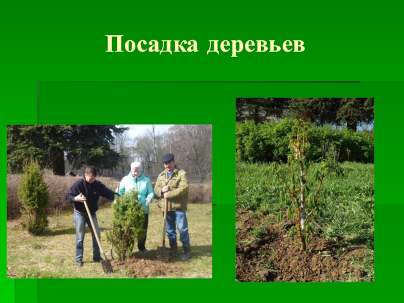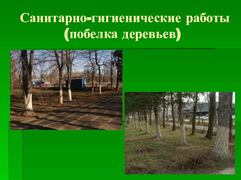Слайд 14 Санитарно-гигиенические работы (побелка деревьев)