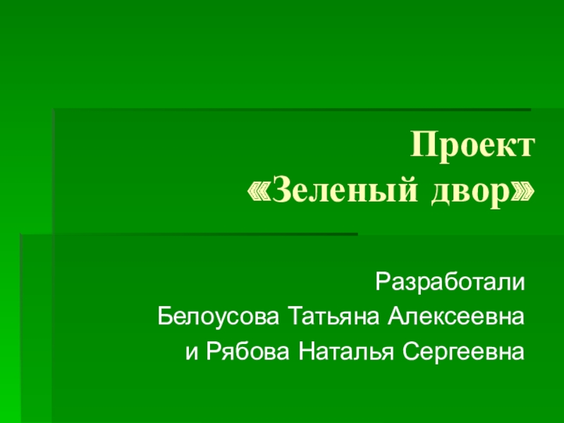 Проект  «Зеленый двор»Разработали Белоусова Татьяна Алексеевнаи Рябова Наталья Сергеевна