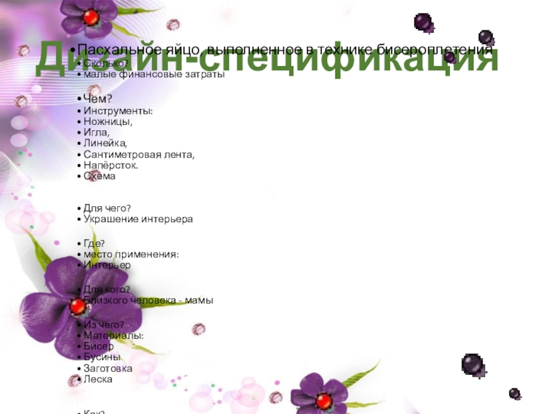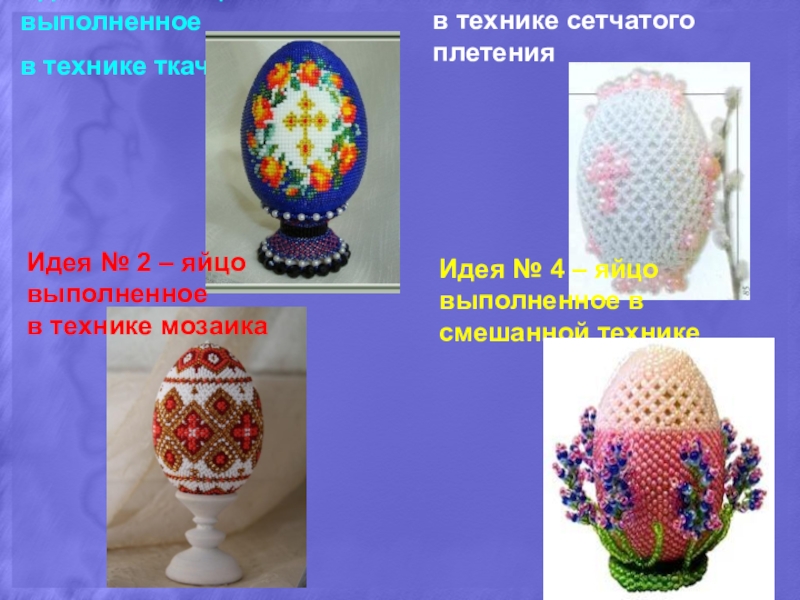 Изготовить яйцо-украшение в технике бисероплетения в подарок маме.