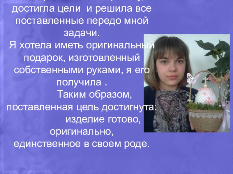 Я хотела иметь оригинальный подарок, изготовленный собственными руками, я его получила .