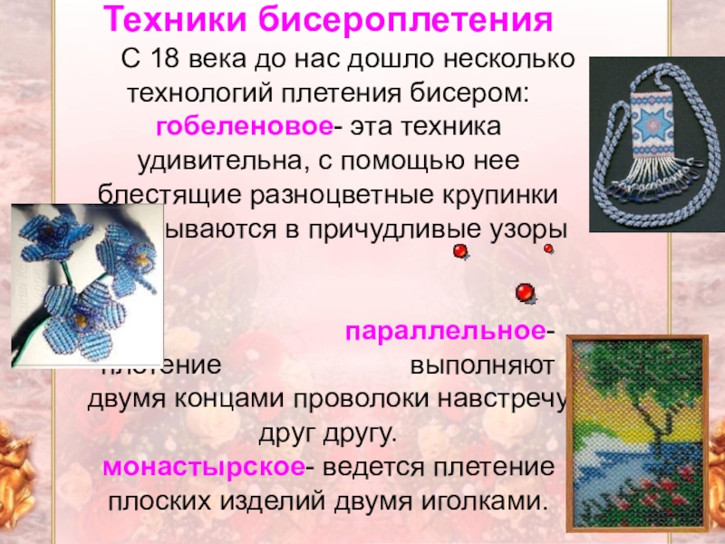Слайд 6На Руси бисер был известен с давних времен. Уже во времена